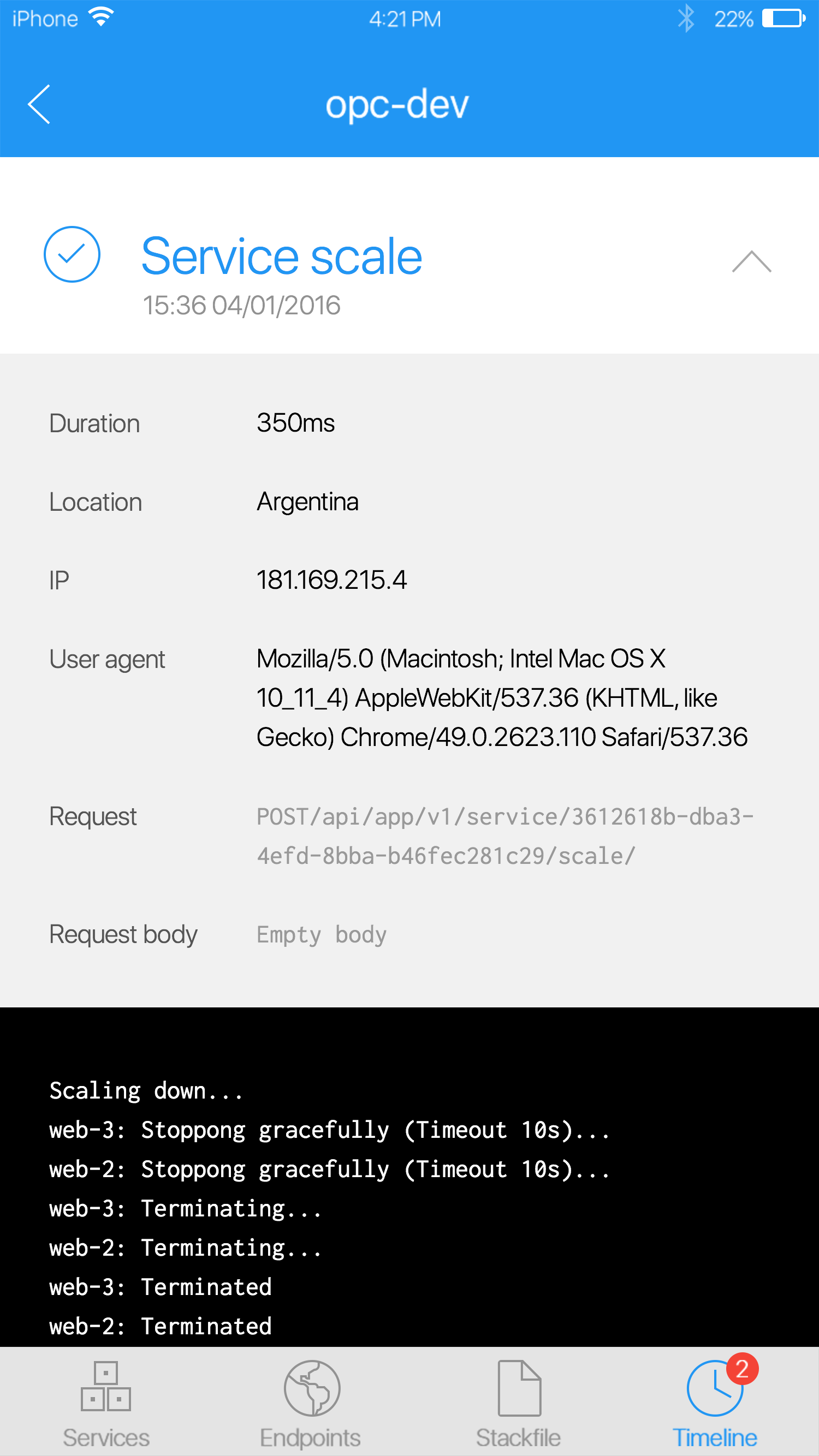 Tugboat is a mobile app that connects directly to Docker Cloud’s APIs, without the need for any services in between.